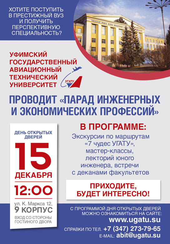 Приглашение на День открытых дверей в УГАТУ - "ПАРАД ИНЖЕНЕРНЫХ И ЭКОНОМИЧЕСКИХ ПРОФЕССИЙ"